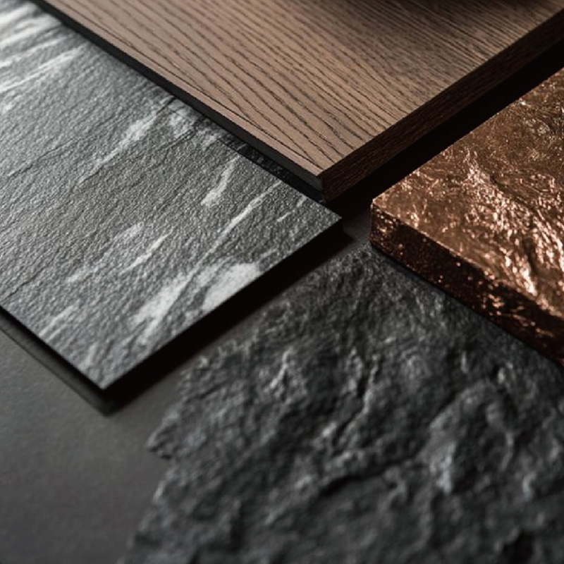 萃取金属冷冽光泽与细腻质感,哑光拉丝 / 细闪肌理精致不浮夸,利落线条勾勒现代锋芒。摒弃繁杂装饰,以金属质感的冷峻高级提升空间气场,低调中显轻奢,简约中见张力。适配追求精致利落、现代轻奢的生活与商业场景,于金属质感中彰显格调与品位。